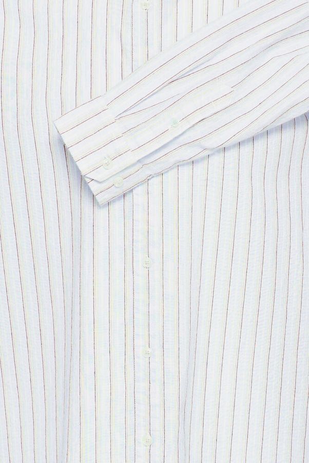 Camisa m/l con rayas tricolor. De color azul celeste y rayas en blanco, beige y gris. Con botonadura de color marfil. De patronaje regular. Tejido fino y fresco y de tacto suave y agradable. Tejido de buena calidad y fácil lavado. Fabricado con concepción ecológica y responsabilidad medio ambiental. Tradición y vanguardia, unidas de la mano. Una prenda perfecta para tus working days en la oficina, combínala con un chino y una americana y lucirás espectacular. Además es una camisa sin fecha de caducidad y será una gran inversión para tu bolsillo y para tus looks. Y es un auténtico must have de todos aquellos amantes de la sobriedad y del minimalismo. Acertarás con la compra! Estilo casualwear.